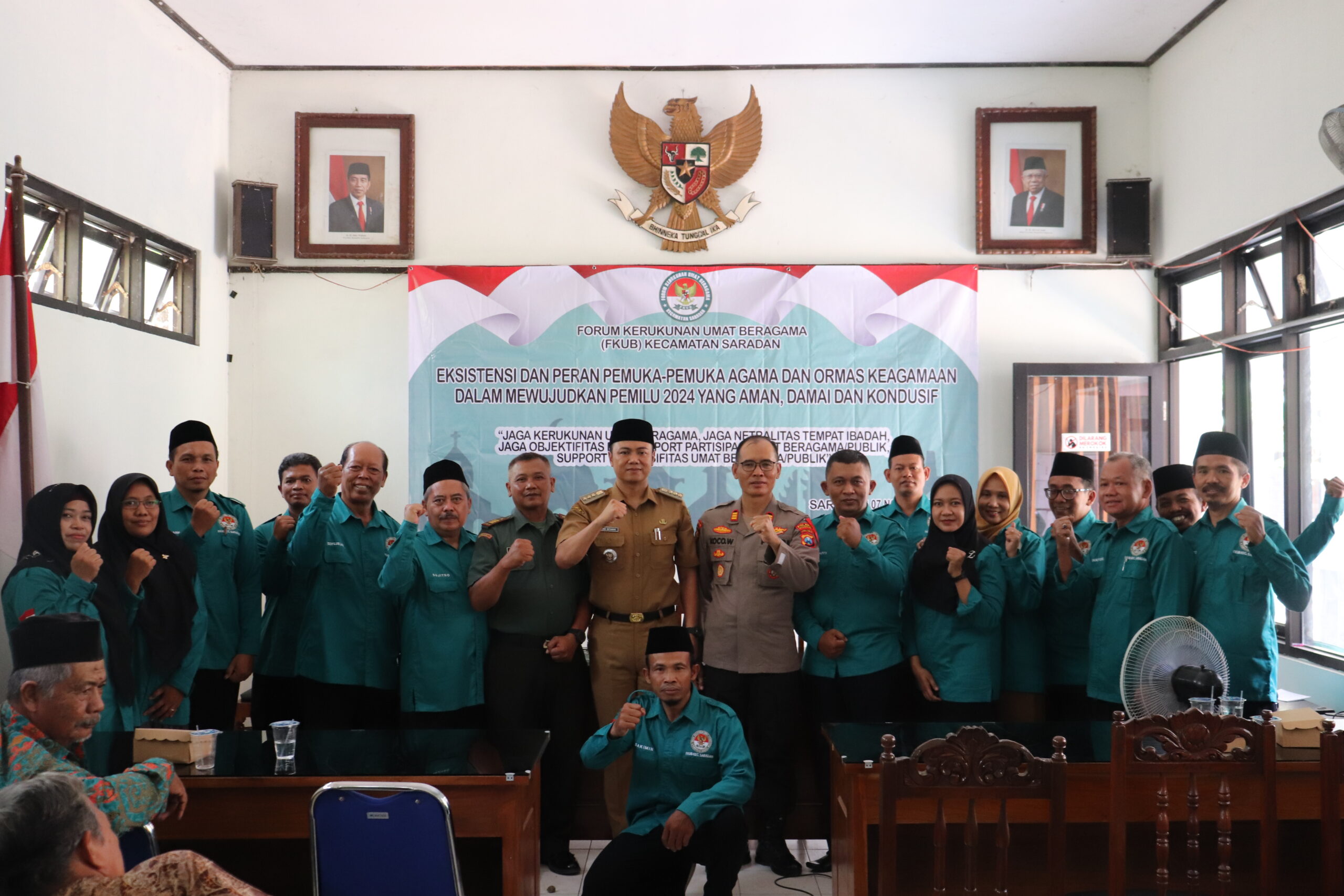 Pada kesempatannya Kapolsek Saradan AKP Koco Widodo menegaskan pemilu harus menjadi pemersatu bangsa jangan sampai dengan adanya pemilu terjadi perpecahan. Dalam pemilu pasti akan ada permasalahan untuk itu komunikasi dan koordinasi serta kerja sama dengan berbagai pihak sangat diperlukan, salah satunya FKUB.