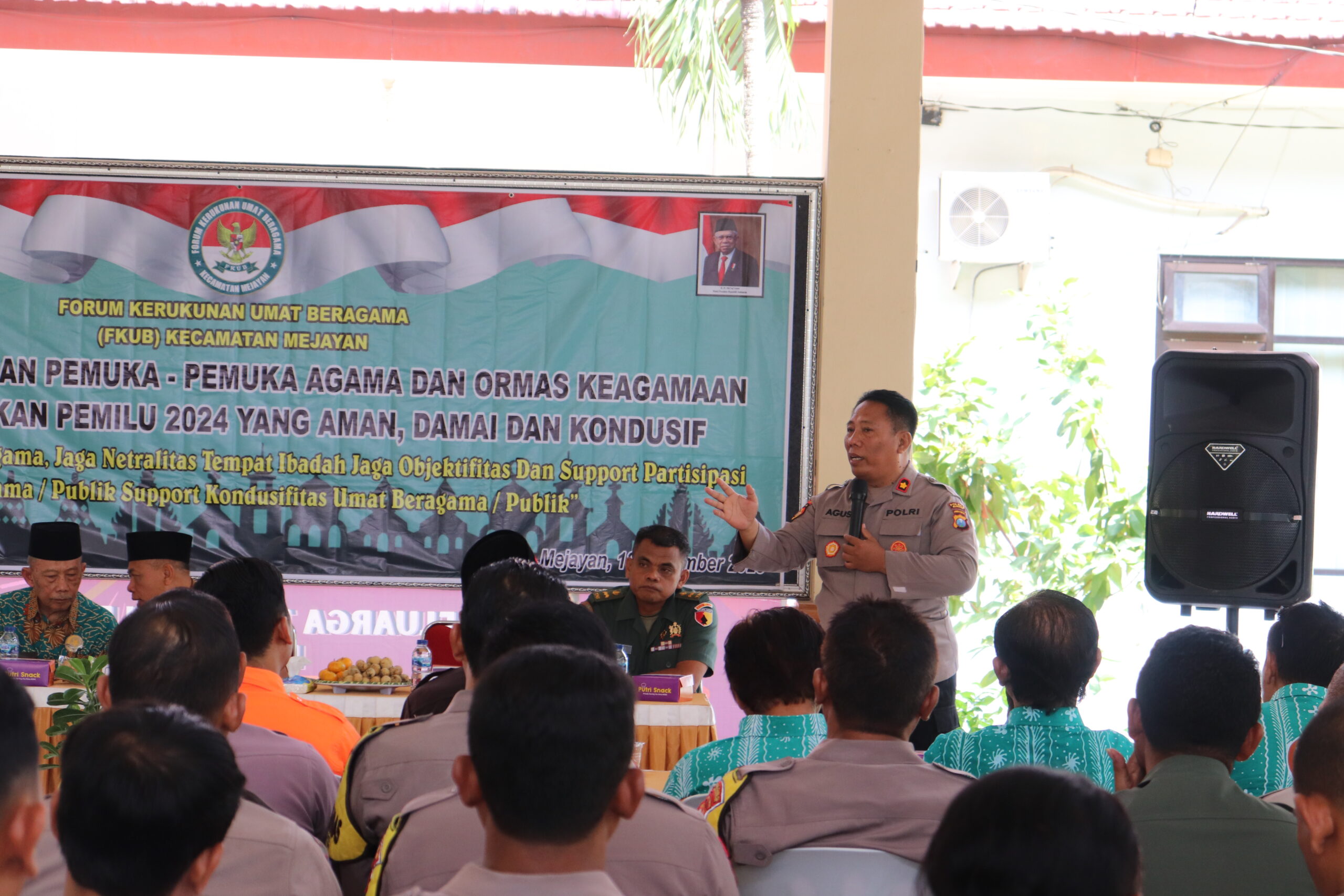Kapolsek Mejayan Kompol Drs. Agustinus Herianto mengatakan FKUB merupakan suatu wadah untuk mengkomunikasikan kegiatan-kegiatan yang ada di masyarakat. Ia berharap FKUB agar masyarakat Mejayan melalui FKUB dan tokoh agama untuk bagaimana masyarakat tetap guyub rukun tidak ada masalah dan berjalan lancar dalam pesta demokrasi tahun 2024. Ia juga menekankan 3 hal, yang pertama dimanapun anda berada jangan sekali-kali menentang dan melanggar undang-undang negara, yang kedua dimanapun anda berada jangan menentang aturan agama, dan yang ketiga dimanapun anda berada jangan menentang aturan lingkungan dimana anda berada (Wafi/Media Center FKUB Kab.Madiun). Sepatu Pdl Dan Pdh
