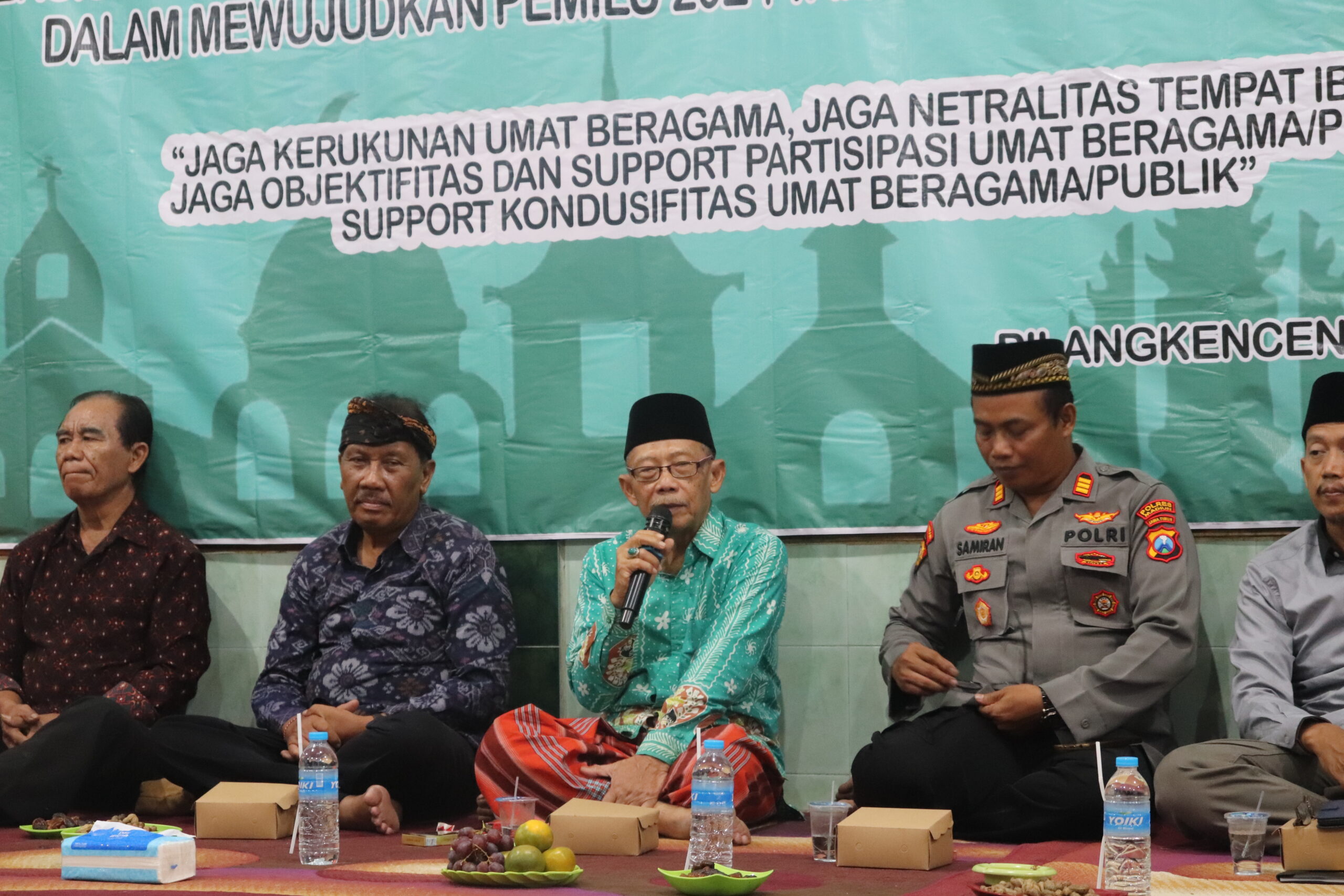 Sekcam Kecamatan Pilangkenceng, Junaidi, mewakili Camat yang berhalangan hadir, menyampaikan harapannya terhadap Forum Kerukunan Umat Beragama (FKUB) hingga tingkat desa. Ia berharap FKUB dapat efektif melaksanakan dan menerapkan regulasi yang berlaku, khususnya dalam konteks pilpres dan pileg, guna memastikan kelancaran serta kondusifitas pelaksanaan kedua acara tersebut..
