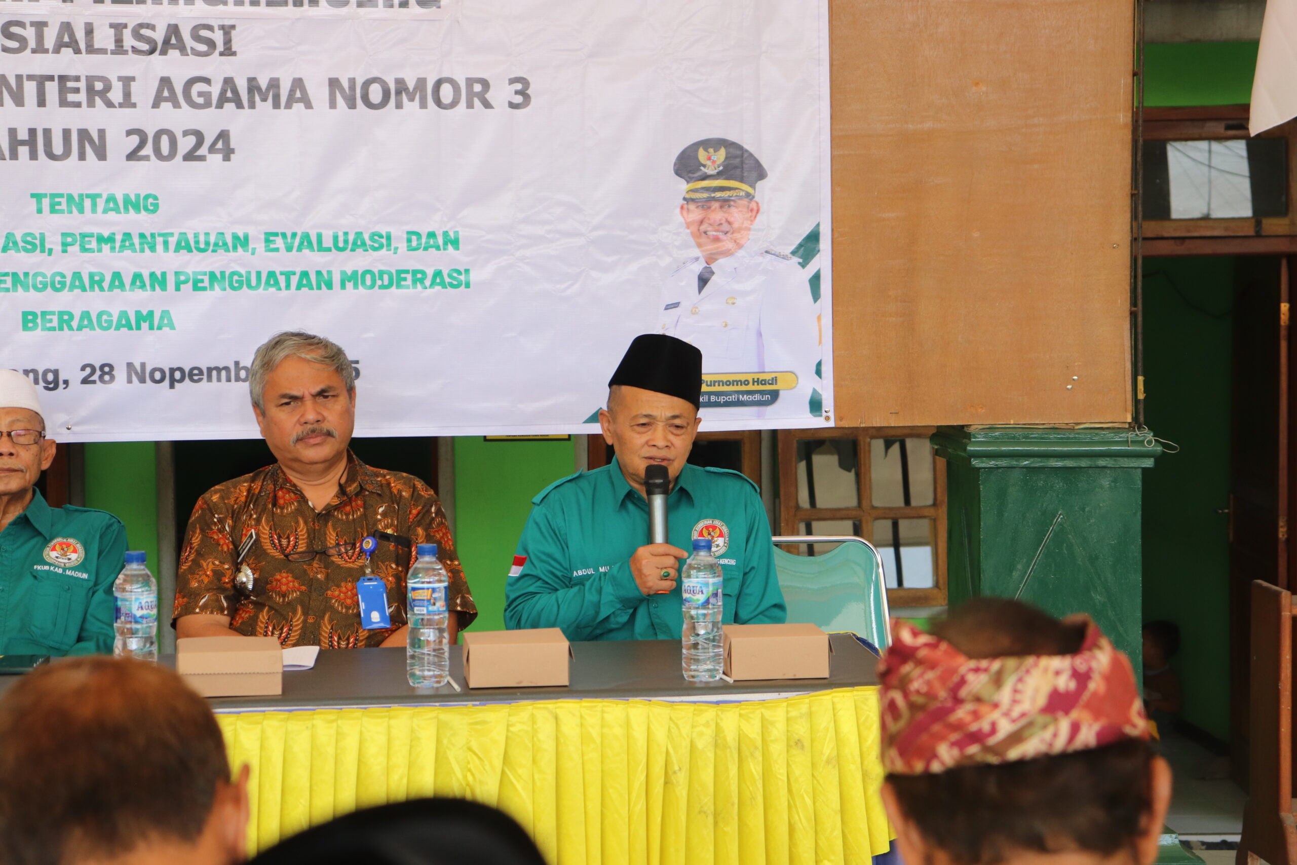 Sementara itu, Sekretaris FKUB Kabupaten Madiun, Dr. Mujahidin, S.Sos., S.Pd.I., M.Si., M.KPd, menjelaskan bahwa PMA Nomor 3 Tahun 2024 merupakan tindak lanjut dari Peraturan Presiden Nomor 58 Tahun 2023 tentang penguatan moderasi beragama.