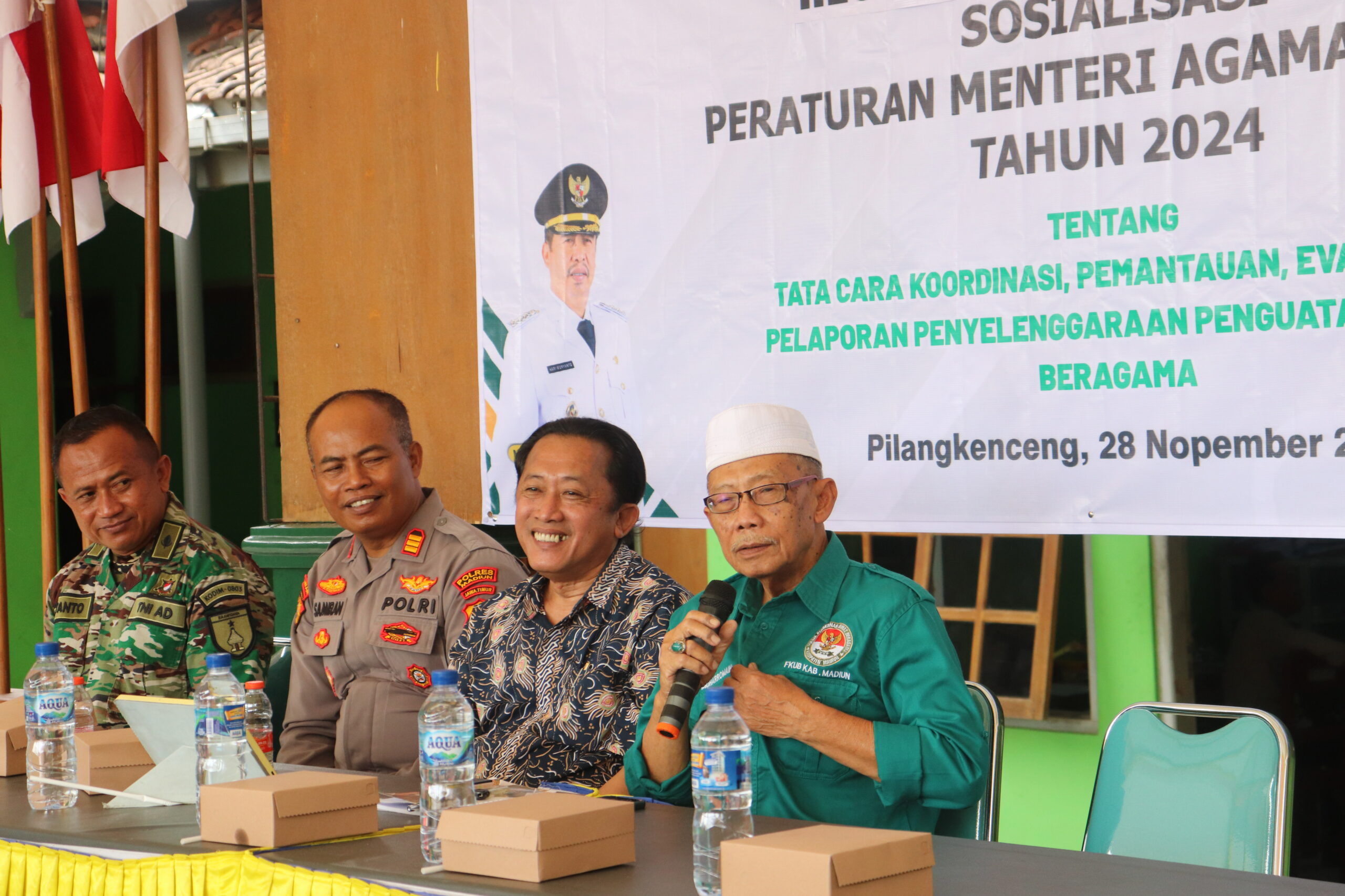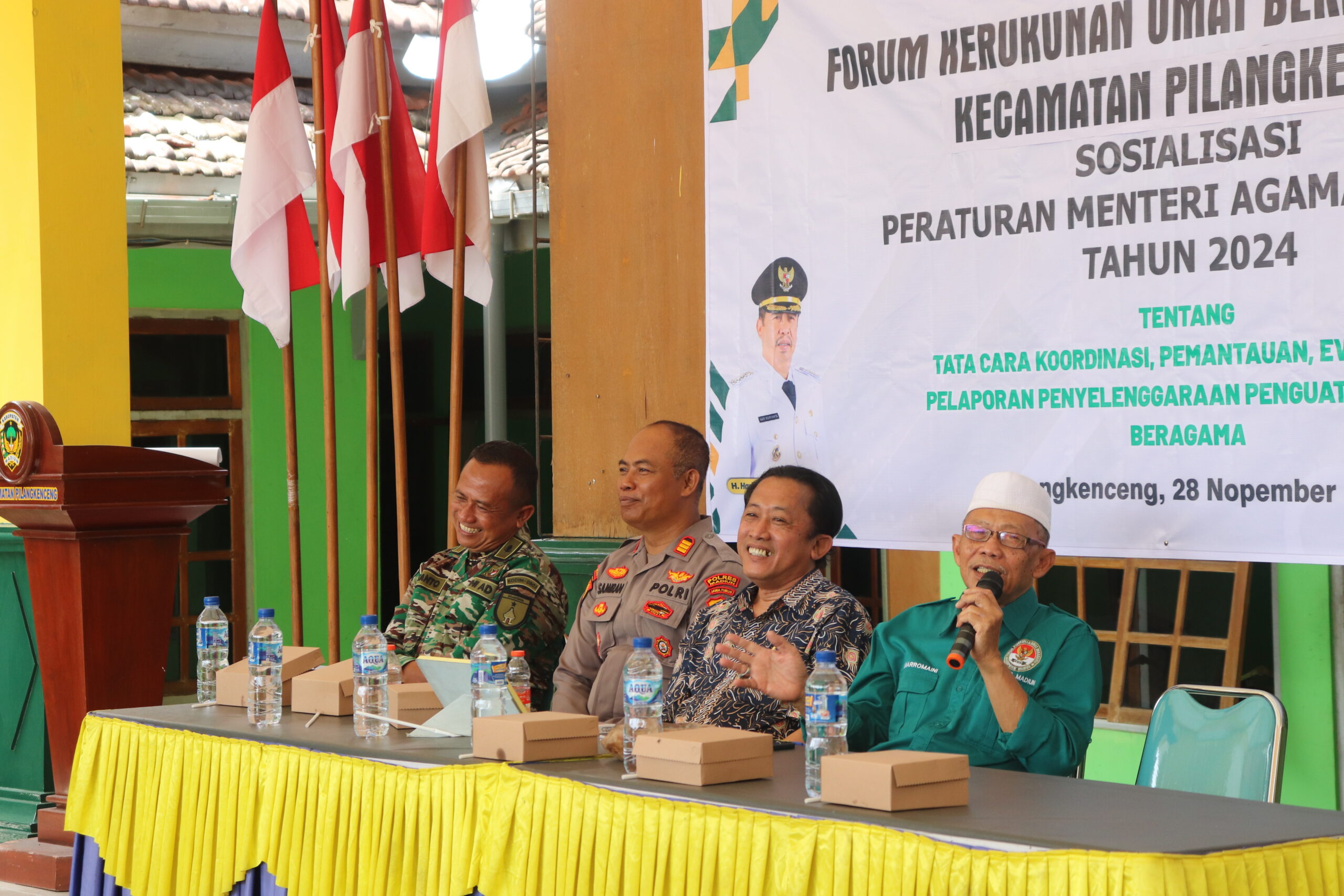 Dukungan terhadap penguatan peran FKUB juga disampaikan oleh Kapolsek Pilangkenceng AKP Samiran, S.H., yang menegaskan kesiapan jajaran kepolisian bersama tiga pilar desa dalam melakukan deteksi dini dan pencegahan konflik sosial keagamaan.